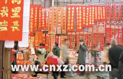 ????? 1月18日始,市宣武市場(chǎng)舉辦迎新年春聯(lián)大展銷(xiāo),來(lái)自蘇魯豫皖周邊地區(qū)的小商販趁著好天氣紛紛前來(lái)選購(gòu)。